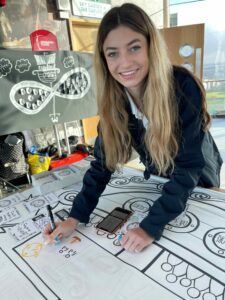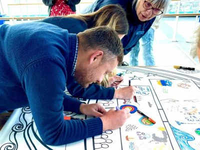 The drawings and braille came together to form the ‘Doodle Braille Rail’ – three 6ft by 6ft murals which will be hung from the rails of the Spinnaker Tower viewing deck.