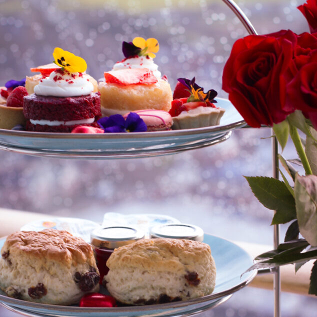 Enjoy a beautifully presented High Tea selection of sweet and savoury treats, paired with breathtaking views across the Solent.